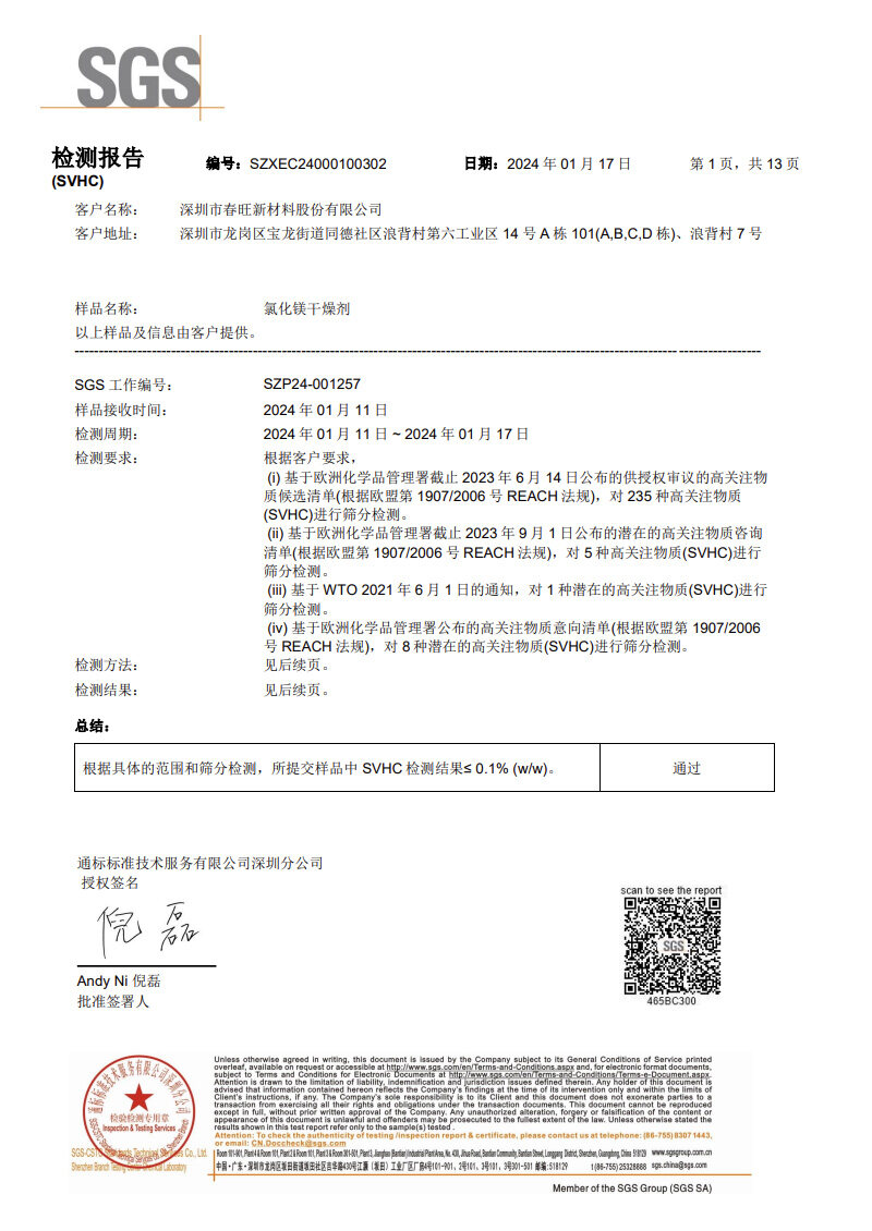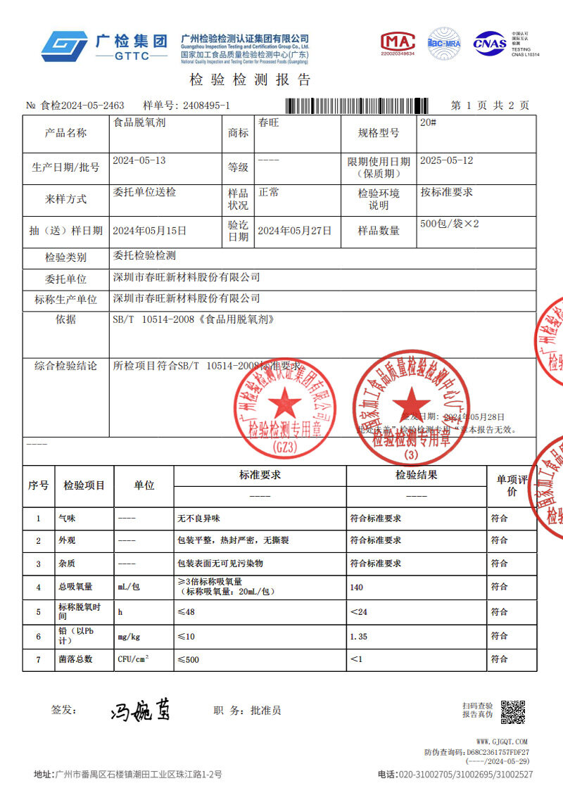 檢測報告 DMF證書 食品級硅膠干燥劑報告 海運鑒定報告 鐵路運輸鑒定報告 航空鑒定報告 干燥劑性能指標檢測報告 REACH249項檢測報告 食品用脫氧劑檢測報告 德國PAHs檢測報告 PFAS388項檢測報告 POPs29項檢測報告 REACH報告 RoHS檢測報告 SVHC檢測報告 加州65檢測報告 鄰苯26檢測報告 鹵素4項檢測報告 歐盟包材檢測報告 DMFu檢測報告 SVHC240檢測報告 想要了解更多信息? 如有任何問題,歡迎通過多種方式與我們聯系,我們將竭誠為您服務。 聯系我們 當前位置: 網站首頁 9 關于我們 9 檢測報告
